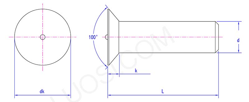 Il principale punto di forza dei perni a testa piatta 100° è il design a testa piatta. La testa piatta a 100 gradi è più comoda da utilizzare in alcuni scenari speciali. Può essere perfettamente abbinato a fori svasati a 100 gradi e, dopo l'installazione, la superficie è estremamente piatta senza quasi sporgenze. È molto pratico in luoghi con elevati requisiti di planarità dell'aspetto.