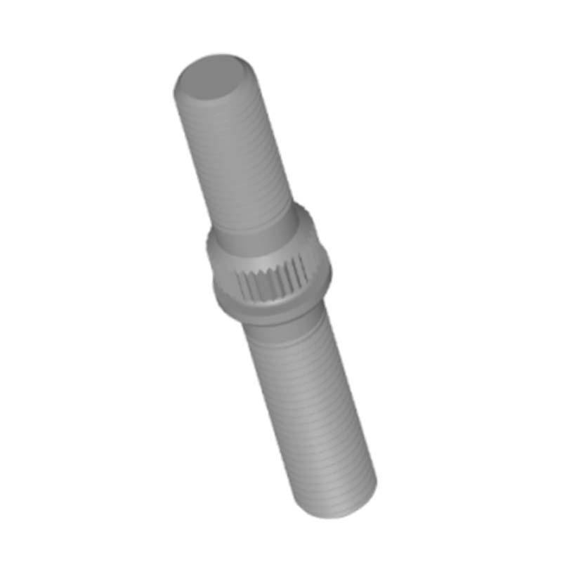 Il perno della ruota a doppia estremità con zigrinatura ha la forma di una "asta" cilindrica diritta ed è una struttura a gradini di diametro variabile. Entrambe le estremità sono lavorate con filettatura esterna e al centro è presente una struttura zigrinata/dentata che può aumentare l'attrito.