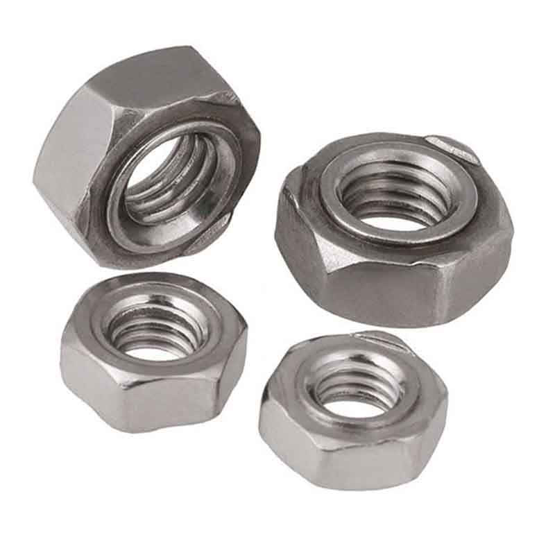 I dadi esagonali a saldare hanno sei superfici e possono essere facilmente bloccati con una chiave. Ha un design unico. Un lato è come un normale dado e presenta fori filettati, mentre l'altro lato ha tre piccoli punti di saldatura e una piattaforma rialzata. Può essere compatibile con bulloni di diversi spessori.